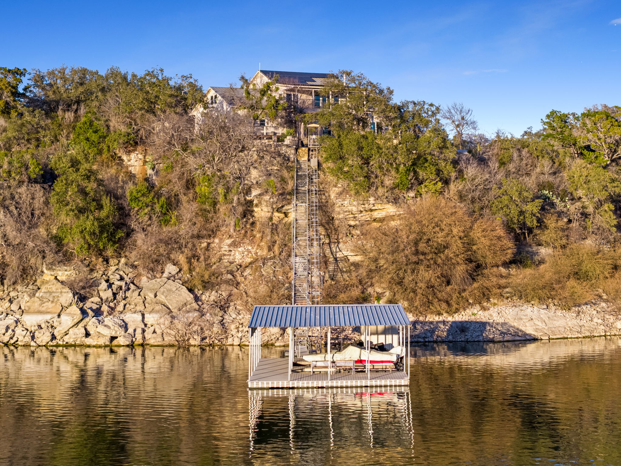 Experience an extraordinary private waterfront retreat spanning 70 pristine acres with approximately 1,400 feet of deep-water frontage on Lake Travis- an increasingly rare offering defined by scale, privacy, and enduring quality. Elevated above the shoreline, the estate captures sweeping panoramic views of the lake and Texas Hill Country, with thoughtfully designed outdoor living spaces that fully embrace the surrounding natural beauty.