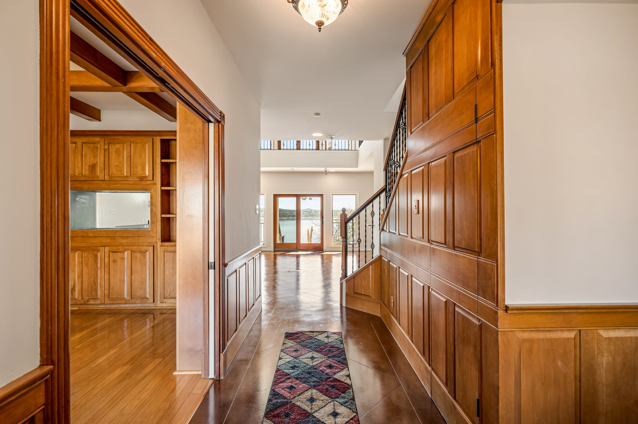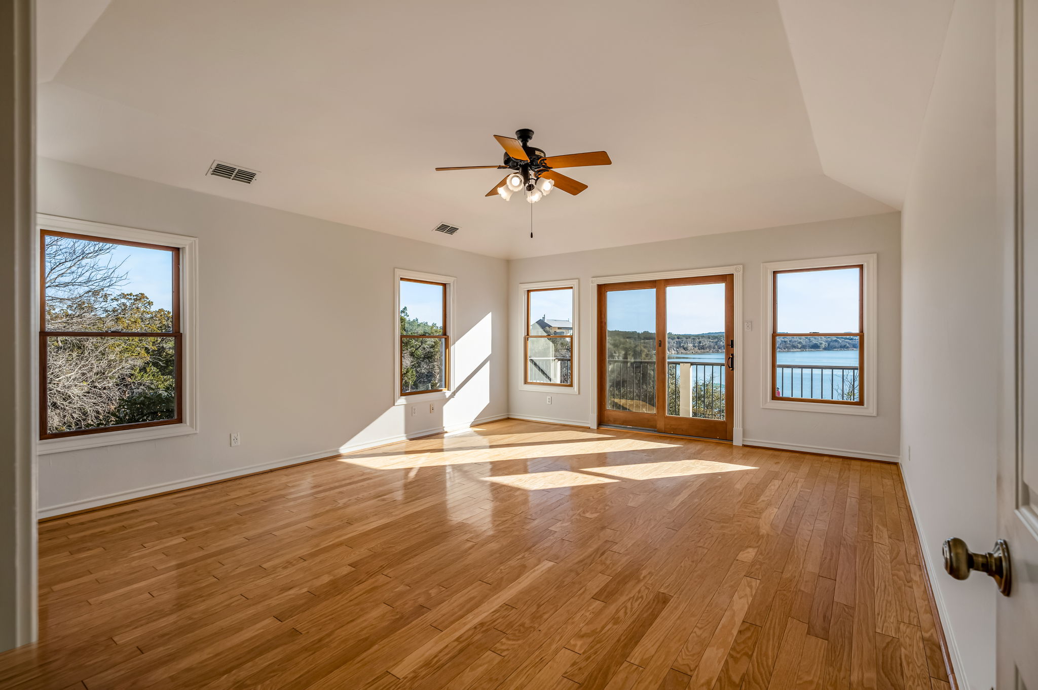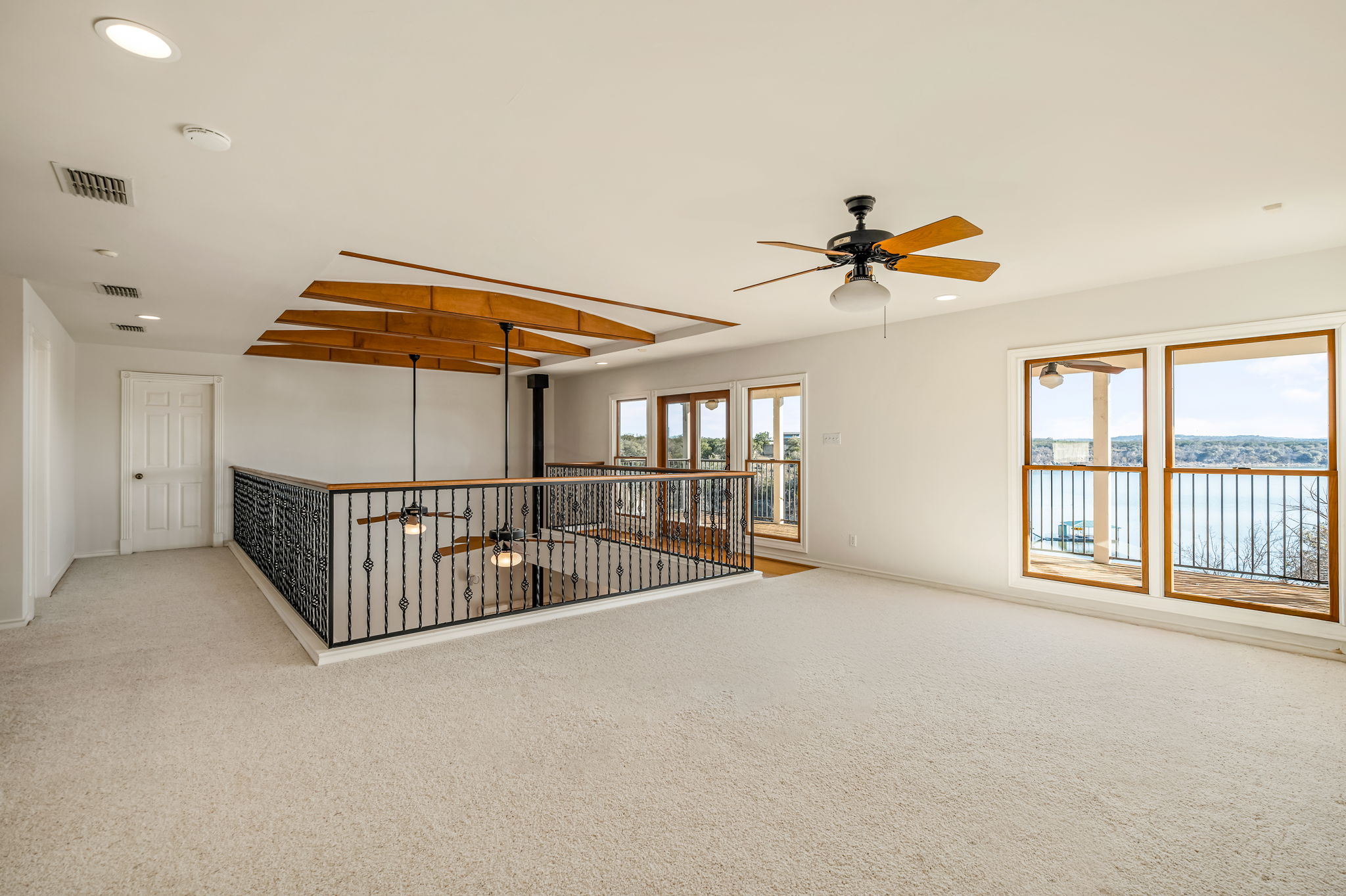 Upstairs, a second living area with unobstructed lake views is accompanied by three additional bedrooms and a full bathroom, creating a flexible and comfortable layout for family or guests. In total, the residence includes four bedrooms and three bathrooms.